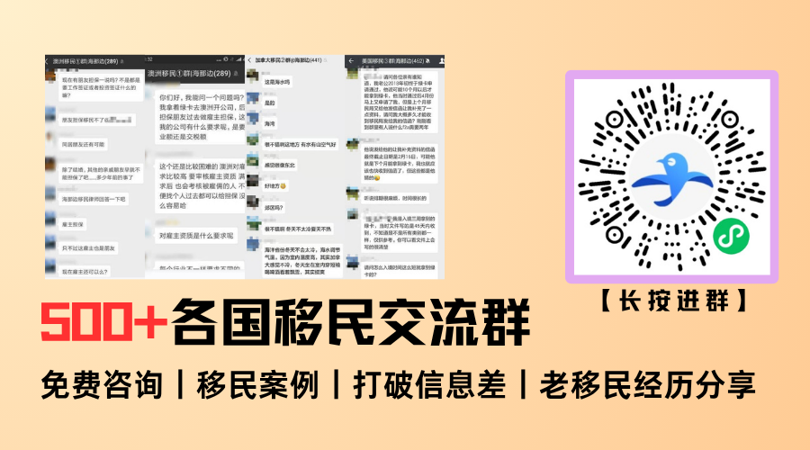 加入我们的移民交流群,与移民同路人一起交流,避免踩坑!